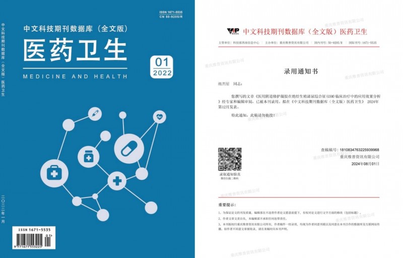 《中文科技期刊数据库(全文版)医药卫生》刊发了《医用阴道护理凝胶在绝经生殖泌尿综合征(GSM)临床治疗中的应用效果分析》。研究结果显示,雌激素软膏联合医用阴道修护凝胶治疗绝经生殖泌尿综合征(GSM)能够通过抗菌、保湿、修复和抗炎的多重机制,全面改善患者的症状,促进黏膜修复,恢复正常的阴道微生态平衡,减少复发率,具有显著的临床优势和较高的安全性。雌激素由于长期使用具有副作用,联合嫤润(后续治疗可长期使用)使用,对绝经生殖泌尿综合征患者的阴道干涩、阴道瘙痒、灼热感、阴道疼痛、分泌物异常、尿痛、漏尿等症状有很好的长期治疗效果。该联合治疗方案为绝经生殖泌尿综合征患者提供了一种更为有效和安全的治疗选择,具有重要的临床推广价值。