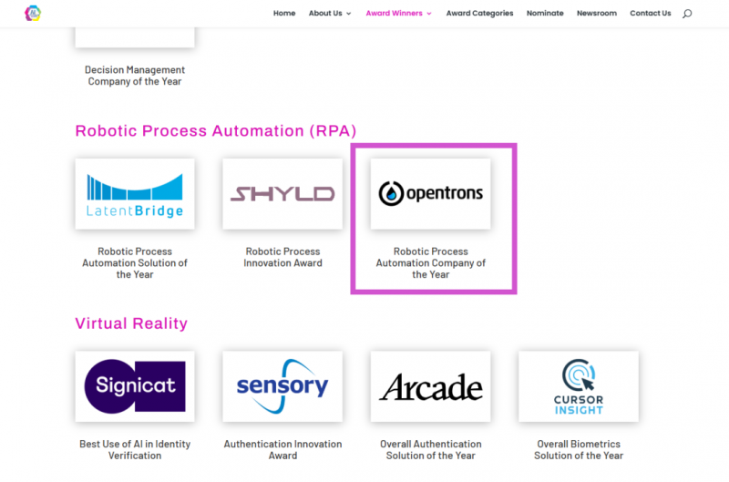 在汇聚全球5000多项尖端提名的激烈角逐中,Opentrons凭借其革命性的AI与自动化融合技术,成功摘得2025年度AI Breakthrough Awards“年度机器人流程自动化公司”