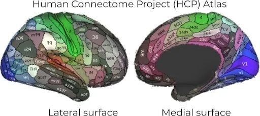 2016年,Glasser及其同事发表了一份具有里程碑意义的出版物,推出了“人类连接组计划”(HCP) 图谱,这是第一个人类大脑多模态图谱(不仅基于大脑物理结构作出分析,还结合了其拓扑结构和功能)。MRI的另一个优势是它允许研究人员在体内研究大脑结构。也就是说,不需要物理组织,这样就允许 HCP 在 1000 多名受试者中验证他们的图谱。完整的 HCP 图谱提出,大脑皮层存在 360 个独立区域,每个半球有 180 个,这些区域可以被单独绘制、命名和功能定义。