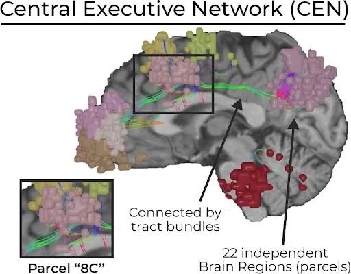 中央执行网络 (CEN) 和子区,颞区 1 (TE1m) 的内侧。