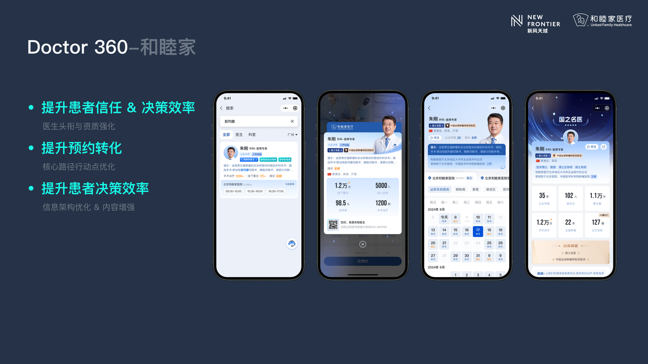·Doctor 360 医生信息透明化:和睦家 NPP医生主页不仅展示医生职称、执业经历,更公开其专科认证、接诊量、患者满意度、典型案例等核心数据,让患者的选择从 “凭感觉” 变为 “凭信息”,极大降低了就医决策成本。