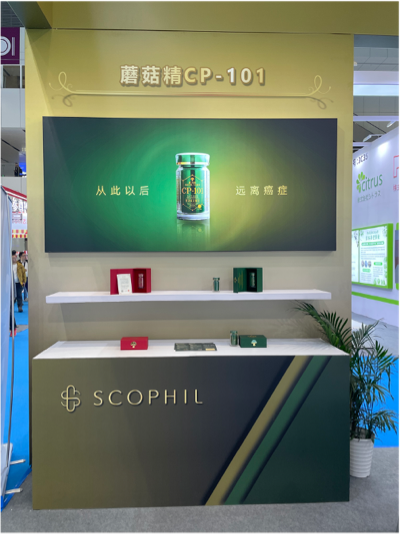 踏入SCOPHIL品牌展位,仿若迈入一座科技感与专业度满格的生命健康殿堂。率先映入眼帘的便是集团旗下癌症重疾治疗的“黑科技”新品——蘑菇精CP-101,它静静陈列在展示柜中,却散发着足以改变癌症治疗格局的强大气场。