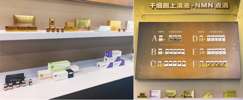 紧邻一旁的是集团风靡全球的抗衰老产品线:干细胞上清液、NAD+、NMN产品,它们宛如岁月的“逆行者”,承载着延缓衰老、重焕青春活力的使命。观展者们饶有兴致地聆听产品背后的研发故事,拉着专业讲解员详细介绍产品功效,深挖产品背后的技术奥秘,眼中满是对技术的赞叹和对青春的憧憬。